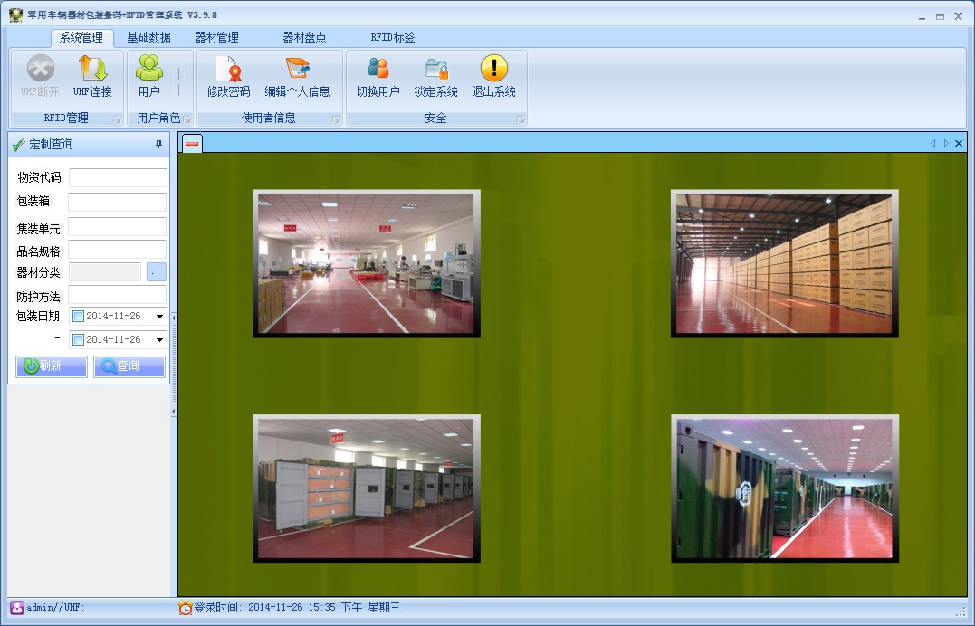 l 器材盤(pán)點(diǎn)、包裝箱盤(pán)點(diǎn)、集裝單元盤(pán)點(diǎn)的方式都是是通過(guò)RFID識(shí)讀標(biāo)簽的方式對(duì)器材、包裝箱、集裝單元進(jìn)行盤(pán)點(diǎn)。
