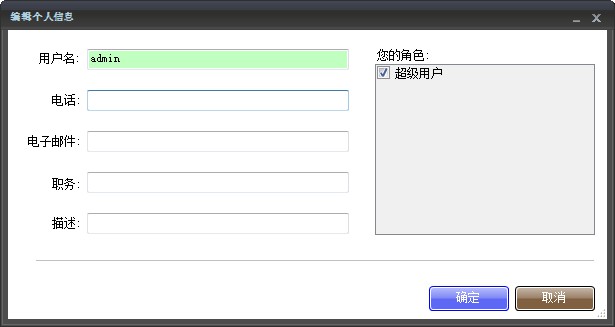 在編輯個(gè)人信息中,登錄者可以修改自己的信息。用戶(hù)名和角色不可以修改,角色統(tǒng)一在“用戶(hù)信息”中進(jìn)行設(shè)置。