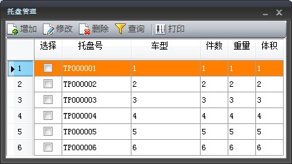 托盤(pán)的界面如下,可按需進(jìn)行增加、修改、刪除、查詢(xún)、打印。