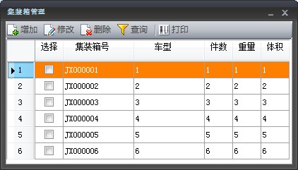 集裝箱的界面如下,可按需進(jìn)行增加、修改、刪除、查詢(xún)、打印。