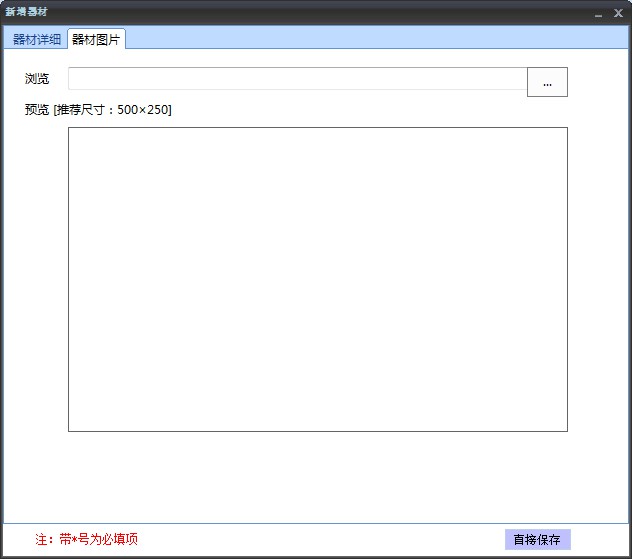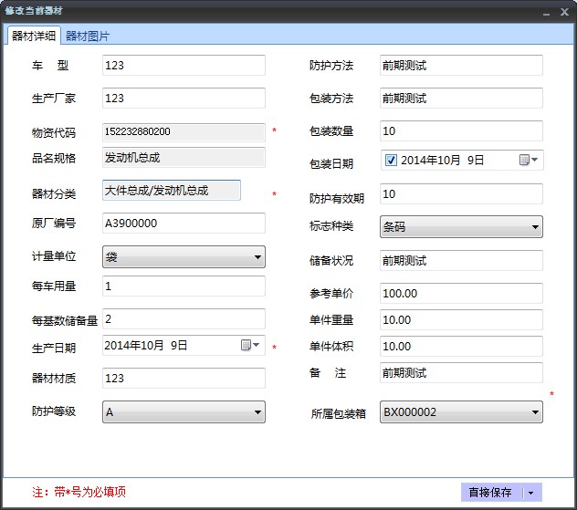 l 填寫(xiě)完成后,點(diǎn)擊“直接保存”按鈕保存器材信息。