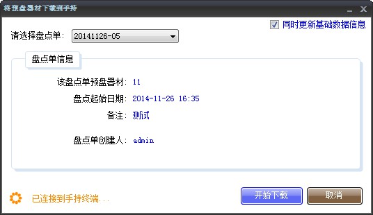 下載到手持表示將已經(jīng)創(chuàng)建的盤(pán)點(diǎn)單數(shù)據(jù)復(fù)制到手持上。
