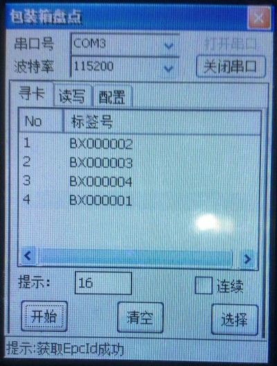 點(diǎn)擊查詢(xún)標(biāo)簽,即可將可識(shí)讀范圍內(nèi)的標(biāo)簽識(shí)讀到相應(yīng)的框中。
