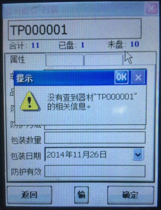 l 對(duì)于手持中不存在的器材,或識(shí)讀錯(cuò)誤系統(tǒng)將彈出如下圖提示信息。